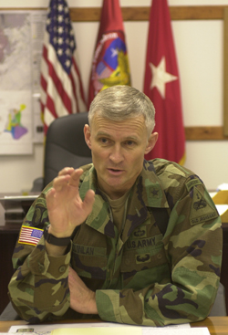 in his Camp Bondsteel office last week, Quinlan, who leaves
